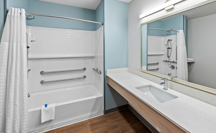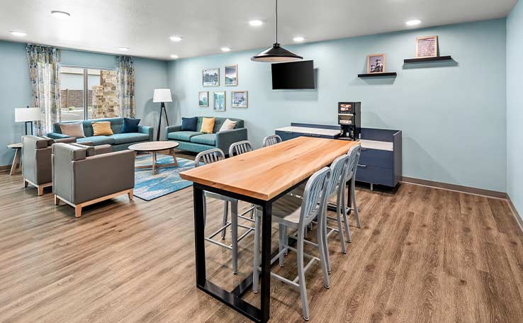 Enjoy the hotel amenities you need for a longer stay. Free parking makes it a breeze to arrive and leave at your leisure. Free WiFi lets you connect to what matters most, including e-mail, online shopping, and your favorite streaming programs. Free coffee is available in our lobby, so you can start the day with plenty of energy. Our fitness studio is fully equipped, allowing you to stay on top of your exercise routine. Guest laundry facilities are available 24/7 for you to do your washing at your convenience. Snacks and drinks can be purchased from our vending machines. Book one of our pet-friendly suites for an additional pet fee, and bring your favorite four-legged friend along for your trip.