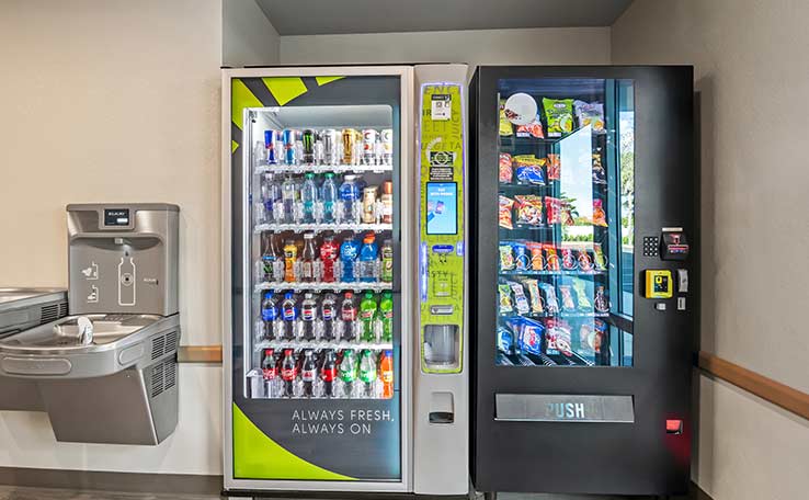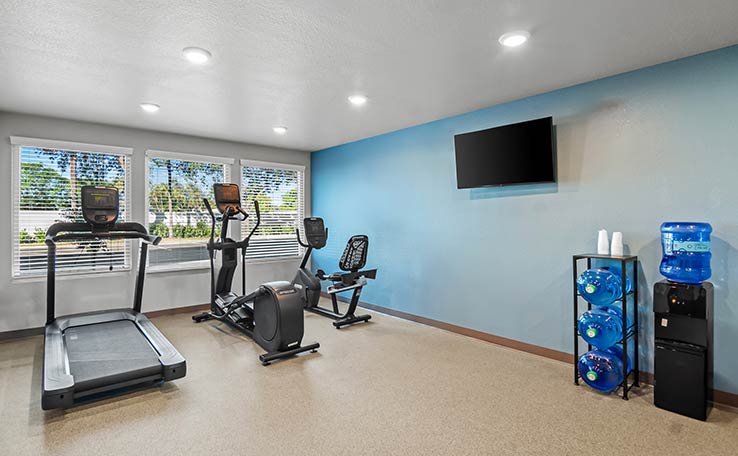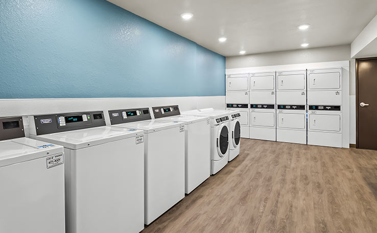 Connect to free WiFi, enjoy a free cup of coffee, and take advantage of free parking at our hotel—these are just a few of the benefits of staying longer with us. Guests can also spend time in our fitness studio keeping up with their exercise routine. Grab a snack or refreshing beverage at one of our conveniently located vending machines. Take care of the washing at our guest laundry facilities, which are available 24/7. Housekeeping is also provided every other week with the option of additional cleaning for a low fee. Interested in bringing your pet with you? No problem. Simply inquire about our pet-friendly guest suites available for an affordable pet fee.
