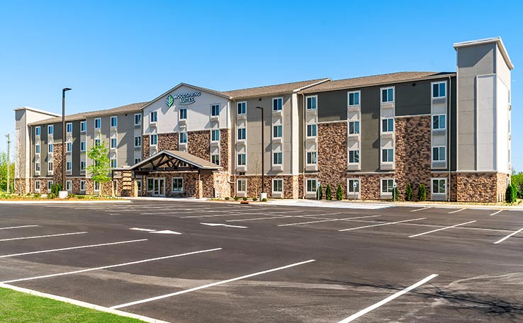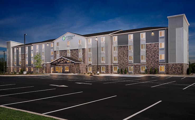 Our extended stay hotel in Greenville, SC is smartly-designed for travelers looking for a comfortable place to stay for longer. WoodSpring Suites® Greenville Airport is conveniently located off I-85, just 10 minutes from Greenville-Spartanburg International Airport (GSP) and close to important businesses like GE Vernova, South Carolina Technology and Aviation Center (SCTAC), Prisma Health Patewood Hospital, and Harley Davidson of Greenville. Our hotel is ideal for business travelers, vacationers, students, outdoor enthusiasts, government workers, medical professionals and patients, and people who are moving or relocating. Free parking is available with enough space to offer unlimited truck parking.