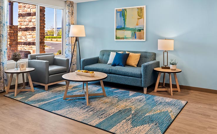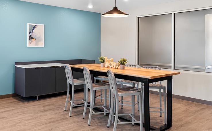 Our goal at WoodSpring Suites hotels is to help you feel welcome throughout your stay. That’s why our smartly-designed property includes the amenities that are intended for your comfort, like free WiFi in all common areas and your guest room. Free parking lets you arrive and depart at your leisure, which is especially good if you’re working or visiting the area for longer. Our fitness center is the ideal place to keep up with your workout routine, and guest laundry facilities will keep your wash fresh and clean. Housekeeping is also available every other week for guests staying longer with the option of additional cleaning for a low fee. Pet friendly rooms give you the option of bringing your favorite four-legged travel buddy.